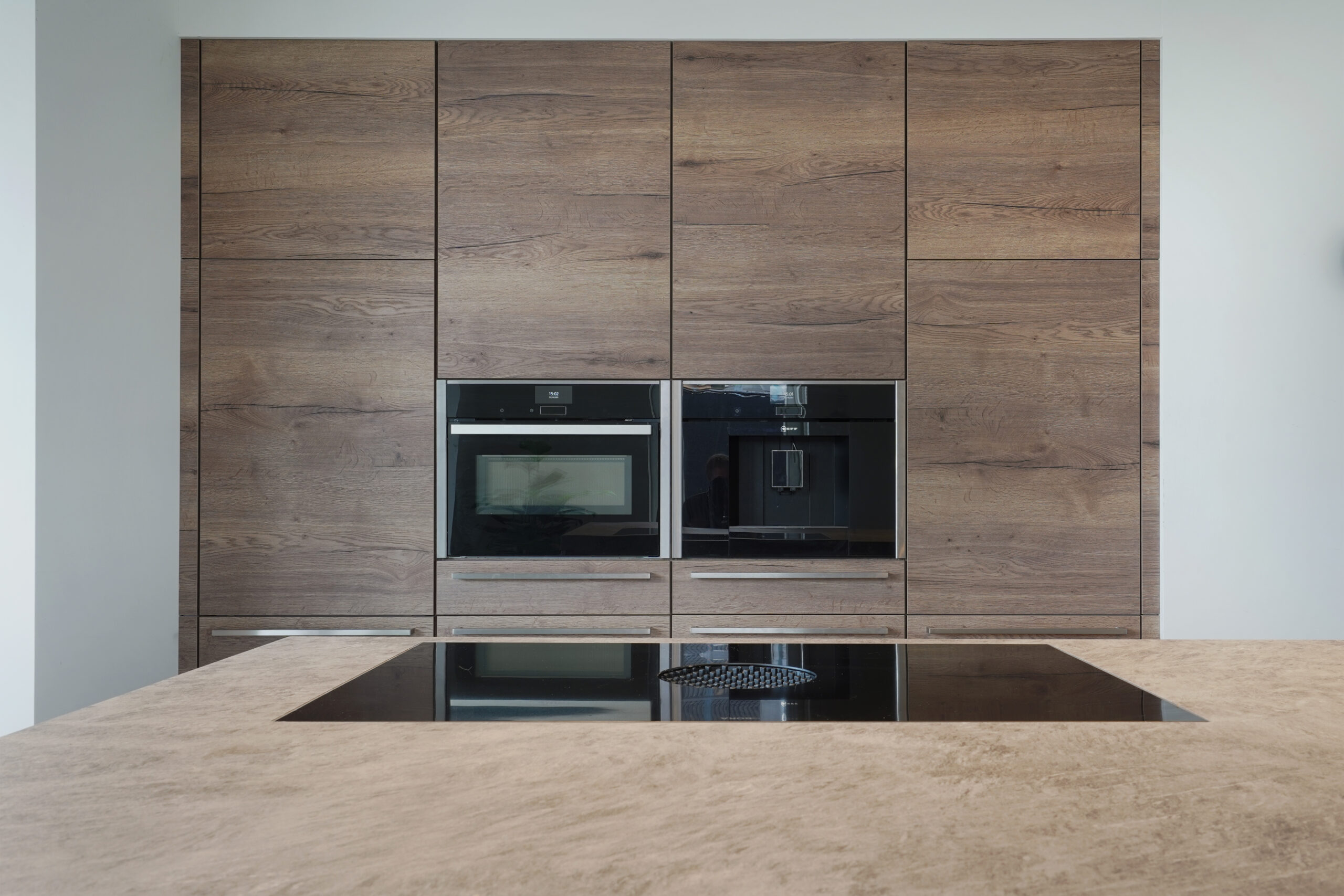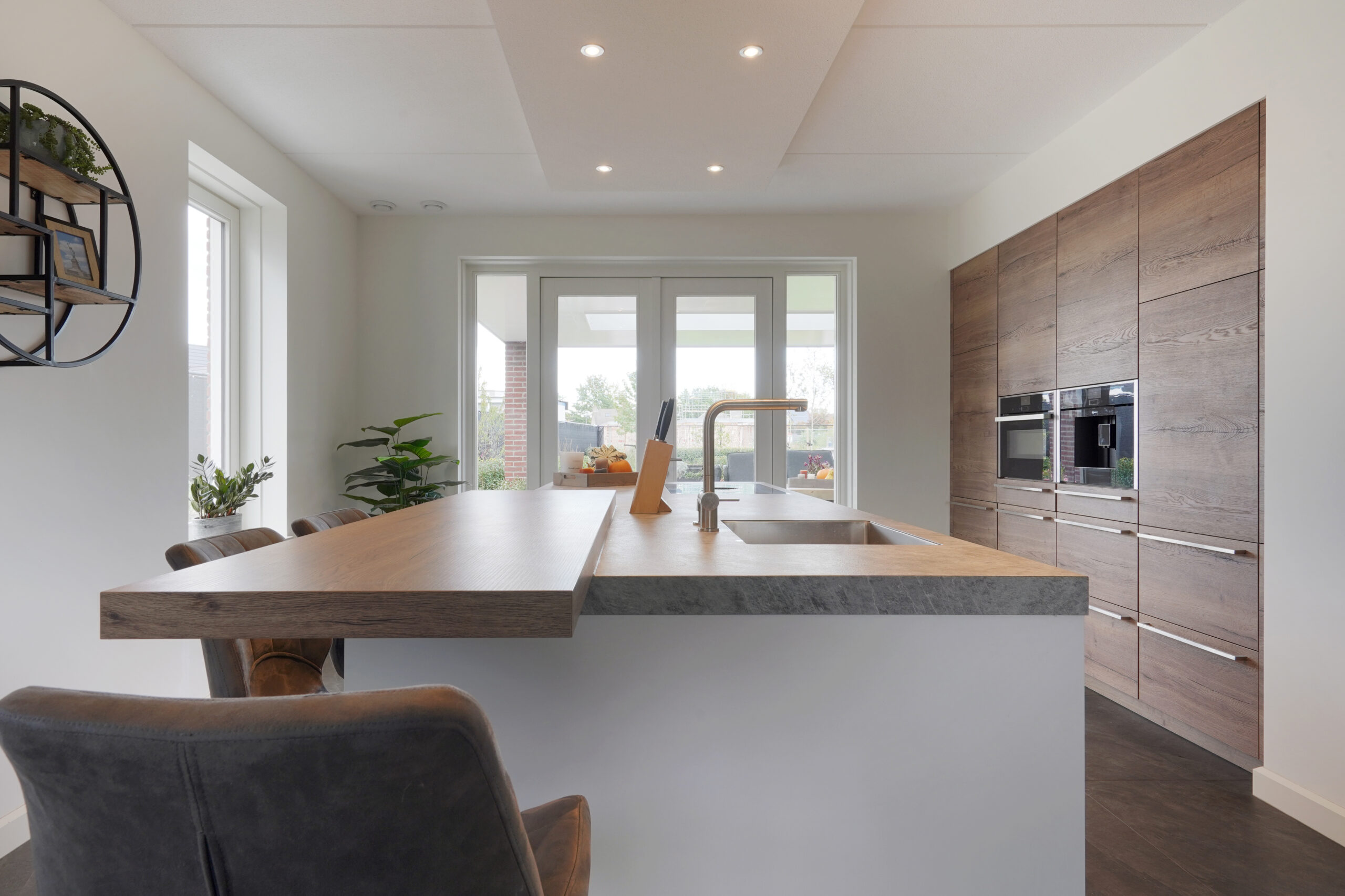 Bij een van onze klanten hebben wij deze geweldige woonkeuken geplaatst. Ze hebben voor een Nobilia keuken gekozen met Neff inbouwapparatuur en een topcore werkblad. De eiken look maakt de keuken levendig en de kleine afscheiding bij de bar, waar het eetgedeelte wordt gescheiden van het kookgedeelte, maakt deze keuken helemaal compleet.